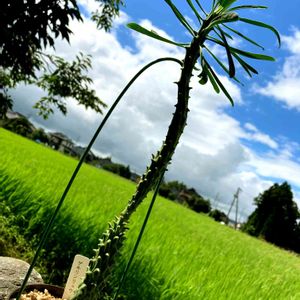 🏷棒の日 参加しまぁ〜す(๑ˊ͈ ꇴ ˋ͈) あ‼︎青空‼︎晴れてる☀️ 今のうち〜📸 ぼこぼことした節のある茎の 逆鱗竜さん🐉 棒みたいに見えますかぁ〜٩( ᐕ)و 赤紫の模様が出てくるはずなんだけど 冬の間ずっと室内擦りガラスの窓辺に 居たから? 春からは日差しがたっぷりあたる窓辺へお引越しして5月後半からは外組へ合流☀️ たっぷり日光を浴びてたはずなんだけどなぁ〜🤔 赤紫の模様が見たい( ´•̥ו̥` )