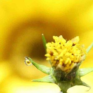 雫シリーズ ヨメナの花びらが散ってしまいました。 おつかれさまでした。 最後の撮影しましょ バックに黄色のガーベラ置いて❗ 雫の中にしっかりとガーベラ納めましたよ😉 ズームして観て下さいね