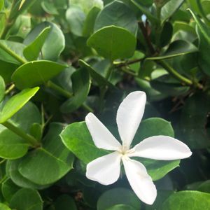 小さなかわいい花!香りがクチナシとよく似てるのでやっぱりクチナシ? ホノルルの歩道で見つけました。 自分の勝手なイメージで、南国なので大きくてトロピカルな花ばかりあるのかなって思ってたので以外でした。