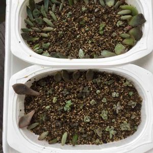 おはようございます 先日の 失敗しない葉挿しのまとめを参考に ご飯のパックに穴を開け 発泡トレイに水をはり 底面給水❣️ これからの季節にいいタイミングかな😅 "元気に育ってね(╹◡╹)