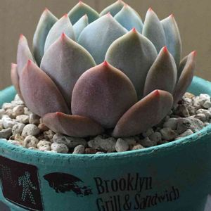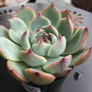 台風接近中☔️ 雨の中買い物行った いつものスーパーのお花屋さんに 肉厚で爪もピンピン 直径8センチ 216円って🍃 😍安い❣️ かわいくて 連れて帰りました💕 この子は、だぁれ⁇⁇ 教えてください😀 回答ありがとうございます💕😊 『桃太郎』さん🍑 元気に育ってね😃❣️