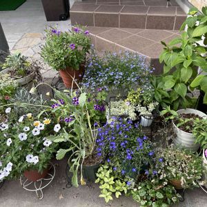 去年はヒョロヒョロ伸びて 花も少しだったブルースター💙 冬越しからの開花💙💙💙 待ってたよ😍 2.今年もワサワサになってるねニゲラ🤍🤍🤍 他の色も咲いてくれると嬉しいのだが🤭どうかな? 3.ベランダのフェンスの上で咲いてたゼラニウム🩷 花びらがベランダに散って 大変だったので 地植えに🩷 すんごいワサワサになってる😁 しかも庭へ降りる階段横に移動したからちょっと 庭に出にくくなってる😝 又移動させなきゃ😅