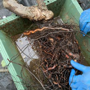 今年一番の残念だ根賞‼️🏆 ノヴァーリスです うちのトップ3に入る勢いのある株で、ワサワサに青バラが咲いて美しかったのですが夏過ぎから一気に枯れ込みました😢 根腐れですね。鉢をそのまま地面に植え込むのは要注意かなと勉強しました😭 ちなみに根腐れって、ほんとに臭い🤣