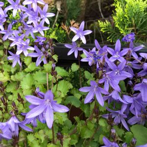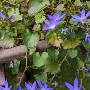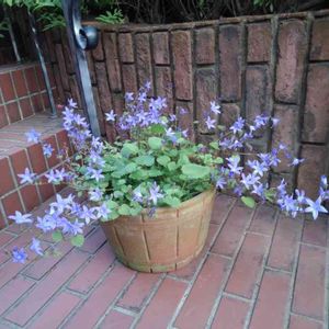 こんにちは😃 雨がポツポツ降ってきました⛈☂️ 今年も咲きました2代目カンパニュラアルペンブルー 初代は20年位前に買ってから時々株分けしながら育てていたんですが一昨年の夏枯らしてしまい、ちょうどカタログ通販で売っていたのを買って、また育てていますが、どうも初代と違って花のつき方がまばら 色も初代とちょっと違うような気が⁇🤔