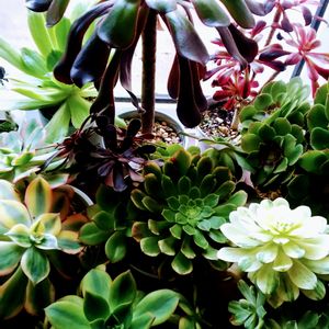 アエオニウム寄植え💚 もうすぐ1ヶ月になり、カットしたレモネード、黒法師さんも元気そうです😃 レモネードさんは少し手直ししなくては 日照不足になりそうです😅💦 今日もボチボチ植替えます♬💚♬