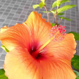 ☘️ハイビスカス[サマーブリーズ・マンダリンウィンド]☘️....ハワイ諸島原産だから日光大好きで、開花したらこんなに明るい!✨😍🧡🧡😍✨👌
