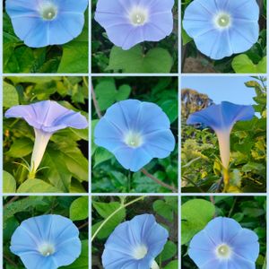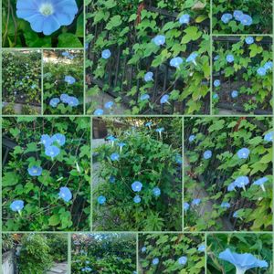 おはようございます☀ 家の門の前とフェイスで咲いてるあさがお🩵のお花です💕 庭や家の裏にも沢山咲いてます☺️ 今日は朝顔ちゃんと数えました215個でした✨