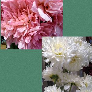 優しいアプリコット色のダリアと真っ白な大きなダリアの花、とても綺麗です💕