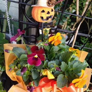 ハロウィン飾りのビオラの花、可愛いです💕