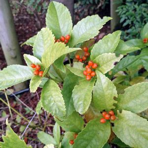 公園のセンリョウの実が大分色付いて来ました。 マンリョウよりもずっと色付きが早いようです💕