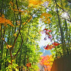 竹林とカエデの小路を歩く😊 緑と紅葉のコントラストが美しい😊