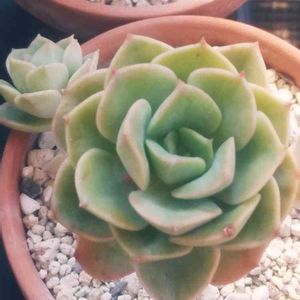本当はニクサーナ錦が欲しんだけど… なかなか出会わないので… こちらの長〜く伸びたニクサーナちゃんがいつもいくお店に1つだけいたので連れて帰りました♪ 長〜いのが気になって〜 でもこんな時期だしでもエケベリア初心者だし失敗したらいやなので1個だけチョンパしてみた。 そしたら1ヶ月で発根確認♡ 葉挿しはまだ動きなし↓