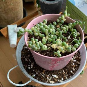 放置状態になっていたグリーンネックレス 枯れてる部分もあり綺麗にして 植え替え完了👍