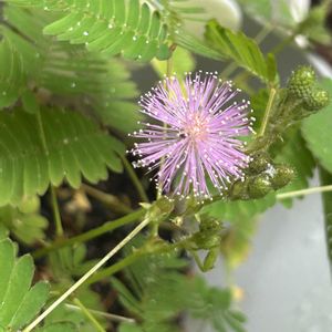 ①オジギソウの花が咲いた やっと…😭 2年前の種を発見して蒔いてみた すぐに発芽したけど なかなか大きくならずにヤキモキ💦 しかも友達にあげたオジギソウは モリモリ大きくなって たくさん花をつけてたのに😅 でも小ぶりながら可愛いし 蕾もまだあるから楽しみ(*´꒳`*)♡ ②アドニスダブルオレンジも 雨の中綺麗に開花🧡 ③ケイトさんも💜
