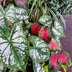 今日は病院で検査の日 ここのエントランスにもカラジウムが🌿✨ 夏の葉っぱの寄せ植え、やってみた~い