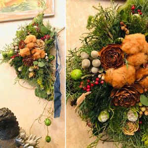 秋に作ったスズメウリのリース•*¨*•.¸¸☆*・゚ 秋に投稿した時は、ハロウィン🎃ぽいと思ったけど、リースにして今見るとクリスマス🎄っぽい😆✨ ツルをぶっちぎって収穫したため、リースの土台にグルーガンでくっつけて。 くっつけて、ぽろっ…くっつけて、ぽろっ。 何度も心が折れてやっとできた作品🤣 1週間ほど飾ったら、熟れたものからカビが生え、泣く泣く撤去。 ドライになる様子もなく、どうやったら種が獲れる?