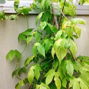 おはようございます☀ 梅雨明けしてからづっと続いてる日照り☀ ぼちぼち恵みの雨がほしいかな💦 4月にまつぴよさんから貰った沖縄スズメウリの苗です💚 朝から夕方まで日当たりのいい場所に置いて育ててます☀ づっと順調で7つ可愛い実を付けてくれてます🎶 が梅雨明けしてから毎日水やりしてるのですが葉っぱがこんなに黄色く枯れてきました💦💦💦 上の方の実は緑で綺麗ですが根に近い下の方の実は少し黄色くなってます💦 お水が足らないのかな🤔💦 それともまだ4ヶ月経ってないけど根詰まり🤔💦 沖縄スズメウリ初めてでよくわかりません😓 どなたか詳しい方アドバイスよろしくお願いします🙇