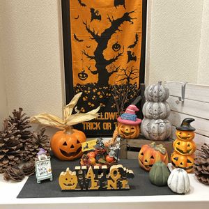 ハッピーハロウィン🎃👻🧟 今年の玄関飾り 去年と同じものを置いただけ。 大きな松ぼっくりは子どもたちが拾ってくる中学校の敷地内にある大王松のもの。さすが大王様、迫力がすごい😁😁 ベビも魔法使いに変身です🧙 「ちちんぷいぷいのぷい〜」と言ってます😊✨✨ 今年のご飯はカボチャのグラタンとカボチャスープ グラタンには昨日スーパーで安くなっていたカボチャとオバケのかまぼこを乗せました🎃👻