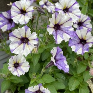 涼しげなペチュニアさん💜💜 不規則な紫と白がかわいいです✨✨ 小さめのお花がたくさん咲きます。 今はカットしてお休み中。 少し前のpicです😊 ベビ、最近指さすような仕草をします。 でも、何かをはっきり指しているわけではなさそう…😅 思わずETと言って人差し指をくっつけてしまう私…🤣🤣 子供たちは知らない、あの映画…😁😁