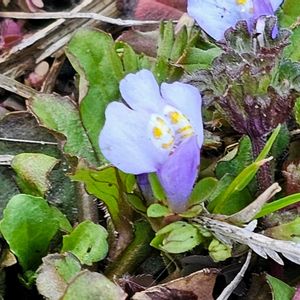 トキワハゼ(常盤爆)とムラサキサギゴケ(紫鷺苔)💜💜💜 サギゴケ科 同属 1️⃣トキワハゼ 名前の由来は一年中咲き続けるので常盤、種が爆ぜる事から 紫色の上唇の先端は浅く2裂する 下唇は3裂し、中央は黄色で隆起し、赤褐色の斑紋があり毛もある 花の長さ1〜1.2cm 2️⃣3️⃣直立し、少数の枝を出し高さ5〜25cm 4️⃣ムラサキサギゴケ 花の長さ1.5〜2cm、高さ3〜10cm 紫色の上唇の先端は深く2裂する 3裂した下唇の中央は褐色の斑紋があり、毛が生えている 花期 3〜5月 5️⃣ムラサキサギゴケの匍匐性(ほふくせい) 名前の由来はサギのような花が苔のように地面を這うことから ⬅️トキワハゼ➡️ムラサキサギゴケ 大体実物大です 両者の違いは❶花の大きさ ❷白っぽいのがトキワハゼで、紫っぽいのがムラサキサギゴケ ❸立ち上がるのがトキワハゼ、ほふくするのがムラサキサギゴケ ムラサキサギゴケは12月に、トキワハゼは2月に、田んぼ周りに咲いていました 赤褐色の斑紋は受粉の為の虫を誘う道しるべ