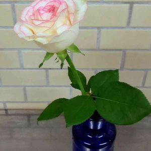 221花目✨ バラ ドルチェビータを追加 やわらかなクリーム色の花に 繊細なピンクのふちどり 優美な姿に あまやかな香りを纏っています🍀 7/8@いつもの水屋
