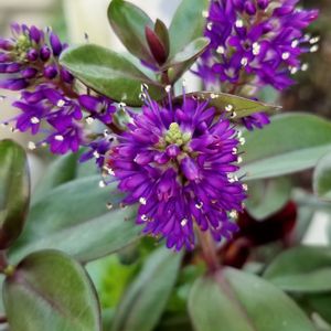 ルリトラノオ[瑠璃虎の尾] (ベロニカグレース) ゴマノクサ科へーべ属 花友さん家の鉢植えで咲いていました。とても魅力的な花です