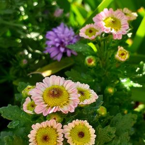 夏の酷暑で大打撃の庭にお助けflowerを② 真っ白ランタナと並んでいたヒューケラとワイルドストロベリーがカリカリに焦げて🌠に その跡地には矮性のアスターとめちゃカワ小菊をお招き♪