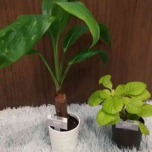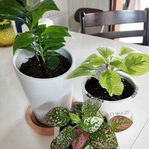 じぃじとお菓子をダイソーに買いに行った息子(五歳) ママの大好きな植物さん、かわいいの買ってきたよ☺️ 謎の組み合わせだけど、葉がかなり痛んでるけど、大切に育てます🤗✨