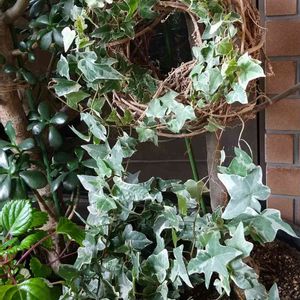 陰に置いていたアイビーがいつの間にかグングン伸びていました🎠カットするのも可哀想なので、リース枠に絡ませてみました😊 🌱生きてるリース🌱鳥の巣みたい🐦