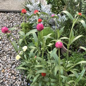 玄関側と裏庭の2種類の千日紅💕 猛暑の中どちらも元気に咲いています🍃✿︎・゚
