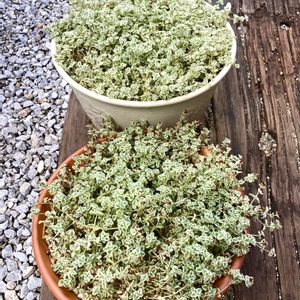 ポスト下セダム畑に下がっているリトルミッシーバケツ。 セリアのミニチュアバケツ🪣に穴を開けて植えているのですが、鉢が小さいせいか、葉がとても小さいです。 小さいのにギッシリ詰まっていて、そのせいか縁のステッチがはっきりしてて、他の鉢のリトルミッシーより可愛く育ってます✨ 同じ植物でも環境によって姿が違ってて面白いですよね〜。
