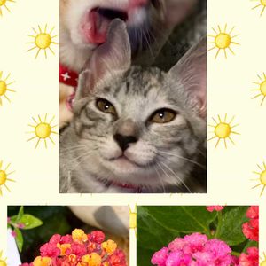 こんばんは🌟 ①ランタナ ②③④🏷️ニャンニャン祭りに参加させてください😺😺 ②私のお腹の上てくつろぐトトロ チャチャも入れと乗ってくる 2匹合わせて8.6キロ お、重い😣 ③その後ワクチン💉接種の為ゲージに2匹入れ病院へ🏥 緊張と不安で ずっと鳴きっぱなしのチャチャ😿 薄ピンクの鼻が濃いピンクになりました😂 ④準備万端🤭