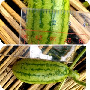 もんちゃんスイカ! 連日の大雨のなか 一日毎に着実に大きくなってきて スイカだなぁーって思うくらいの 模様もしっかり出てきました😁 ちょっと前まではきゅうりのようでした(笑) 長さ7センチ 幅3センチ さぁ、ここからどこまで成長を見せてくれるのか観察観察♪