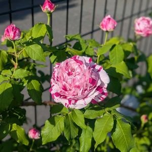 5/18 (日) 🌤🌥 💗🩷🤍🌿薔薇🌿🤍🩷💗 品種名📛ヴァリエガータ ディ ボローニャ バリエガータ ディ ボローニャ Variegata di Bologna 5/18付📷📱💕公園広場🏞にて🌹