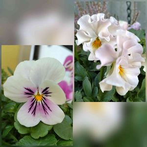 ビオラプラス ❤︎きまぐれロージー❤︎ 咲き進むと花色が変化していくビオラ𓂃 𓈒𓏸𑁍 丁度3輪、違うお色が咲いていたので、タグに似せて色変をコラージュしてみました🤍💗 もりもり咲いたら、グラデーションがキレイでかわいいだろうな〜たのしみ٩(๑❛ᴗ❛๑)۶💖
