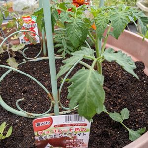 リコピーナブラックというミニトマト。 チョコレート色のトマトって苗ではじめて見た! ちゃんとなるといいなぁ😙🍅 Greensnapでもリコピーナブラック育ててるの私で2人目だ! やっぱり珍しいんだな