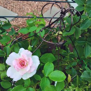 マチルダ😊2番花🌹 手作りのオベリスクに絡ませてみました☺️