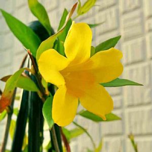 カロライナジャスミンさん、咲きました☀︎ 🐕🐈が触れてしまわないよう、家の裏でコソッと育てています。 このコもそろそろ植え替えなきゃ~😅