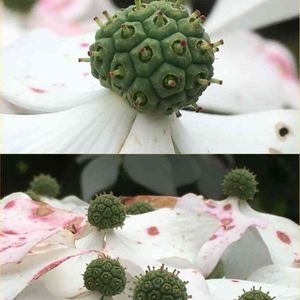 次の段階へ⚽️ 「山法師」の名前は真ん中の丸い花穂を丸坊主に、4枚の萼片を白い頭巾にみたて、比叡山延暦寺の「山法師」になぞらえたのだとか。今、ちょうど丸坊主がいっぱい並んでる感じかな🙄イガグリだけど😅💦