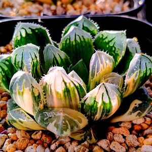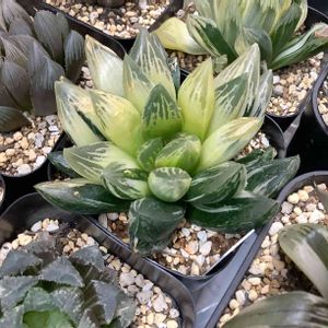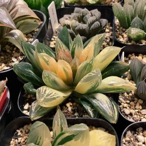 🏷️錦の日 ハオルシア:オブツーサ交配錦 このまま、いい感じで散り斑のまま育ってくれないかな🤔