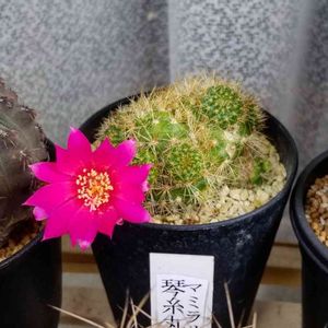宝山さん。 右斜め下の方にある赤いポッチ状の蕾。 我が家のサボテンさんたちは てっぺん あるいは 上の方の周りから 花芽を出してますが、この宝山さんだけ 本体と土の境目あたりから花芽がでてます。 蕾の色からすると 赤い花が咲くだろうと 思えるのですが、はてさて どうなりますやら。 花が咲き終わったら 植え替えしようと 考えてますが、いつになるかな?