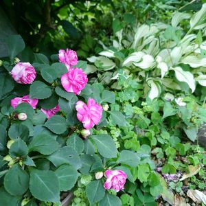 紫陽花の下で過ごしやすそうなインパチェンスとギボウシです(◍•ᴗ•◍)❤