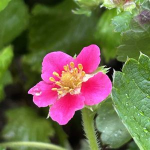 1️⃣イチゴ🍓 2️⃣ハマナデシコ 3️⃣カポック 4️⃣5️⃣メドーセージ 植物には恵みの雨💧 最高気温27℃ ぎらつく太陽☀️がなくほっと一息😮💨