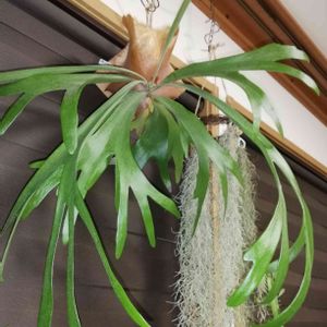 こんばんは〜 うちのビカクシダネザーランドです。去年の5月にお迎えしてから1年以上たちましたが、9センチポット苗からここまで大きくなりました。