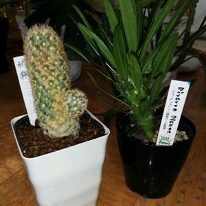 おはようございます。 またまたお迎えしちゃった植物です。昨日、道の駅で売られてたのを衝動買いしてしまいました。 サボちゃんは、朝霧〜赤いお花が咲くから朝霧だそうです。黄色いお花が咲くのが夕霧と言うことで今度は夕霧ちゃんをゲットしたいと思います😊 となりの子はユーフォルビアかなと思ったら、パキポディウムのラメリーと言うことで初パキポディウムです。長生きさせたいです。