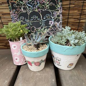 皆さんこんにちは。 今日は、曇ってて過ごしやすいです。 九州地方の方は、災害級の雨。 どうか無事でありますように。 遅らせばながらスクラッチ投稿です。 最近、やってなかったからようやくできたものを。 アロマティカス、昨年枯らしちゃったので今年は、気をつけなくっちゃ💦。トップシーダービーさんは、念願の丼になってきました。あと一つは、名なしさんですが、とっても葉が綺麗なんですよ。