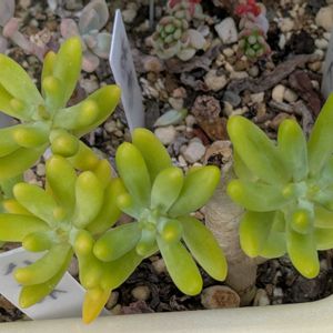 八千代姉さんと可愛い子たち🍌 八千代好きなんよな〜なんでか知らんけど💛 水やりが行き届いてなかったとこのカスカスぺったんこの多肉を涼しい部屋に持って入ってきて水やりして扇風機で乾かす時期がもう来ましたーーー😇