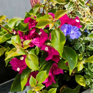 昨日のブーゲンビリアの 横の アメリカンブルー💙💜 (プールの前の寄植え) 大好きなお花 最近 ホームセンターで 気になるお花たくさんありますが 夏休みに お出かけするかもと思って 今は増やせません あかん がまんがまんƪ(‾.‾“)┐