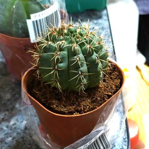 おはようございます☔ 昨日は近くのダイソーに行ったんですが、土がカラカラで真横になってて、かわいそうになり枯れてしまう〜と、お持ち帰りして、すぐ植え替えましたよ☺️緋花玉かな?