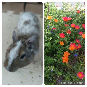 お友達からのご要望により、デグーマウスのグーちゃん(雄)。 僕以外には馴れ馴れしいですが、僕にはツンデレです。 ポーチュラカとアメリカンブルー、綺麗でした。